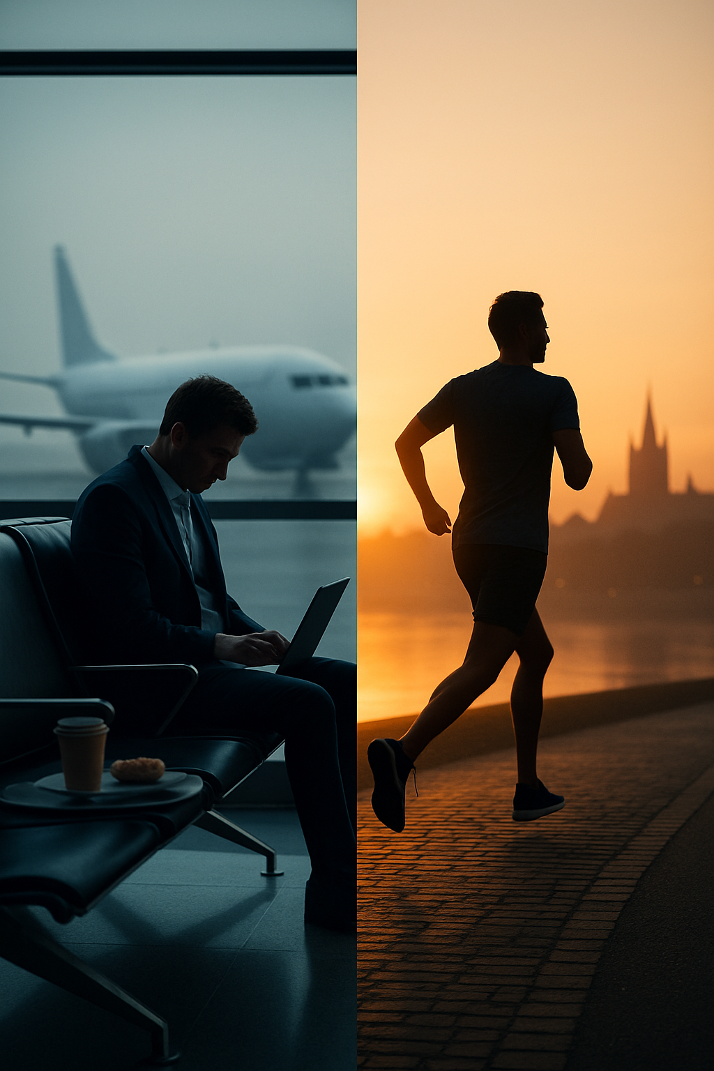 Airport → city → run. Testing [Brand/Product] where training actually happens on the road.